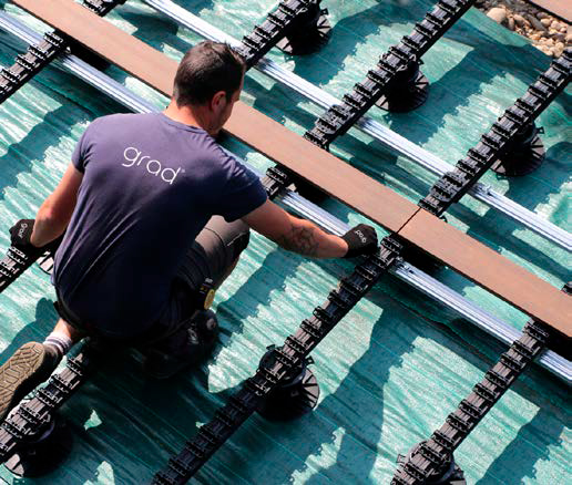 Il s’agit de rails aluminium pré-équipés de clips Grad® à chaque installation correspond son type de rail (Flatrail, Toprail, PR...) et ses fonctionnalités et accessoires permettent d’assurer toutes les configurations possibles, aussi bien au niveau du platelage que des finitions. Des lignes de fuite parfaites, grâce aux clips Grad®, installés sur des lignes de production automatisées : un concept unique de rails pré-équipés !